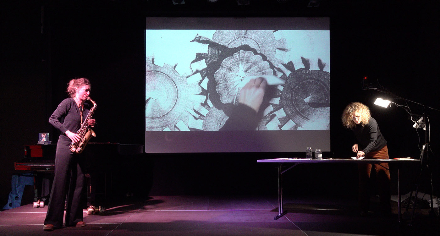 Im Kunsthaus Interlaken wird im Rahmen der Kantonale Berne/Jura findet eine Premiere statt: die live Performance 'Vice Versa – Nicole Johänntgen, Saxophone & Christina Benz, Sandzeichnungen'.